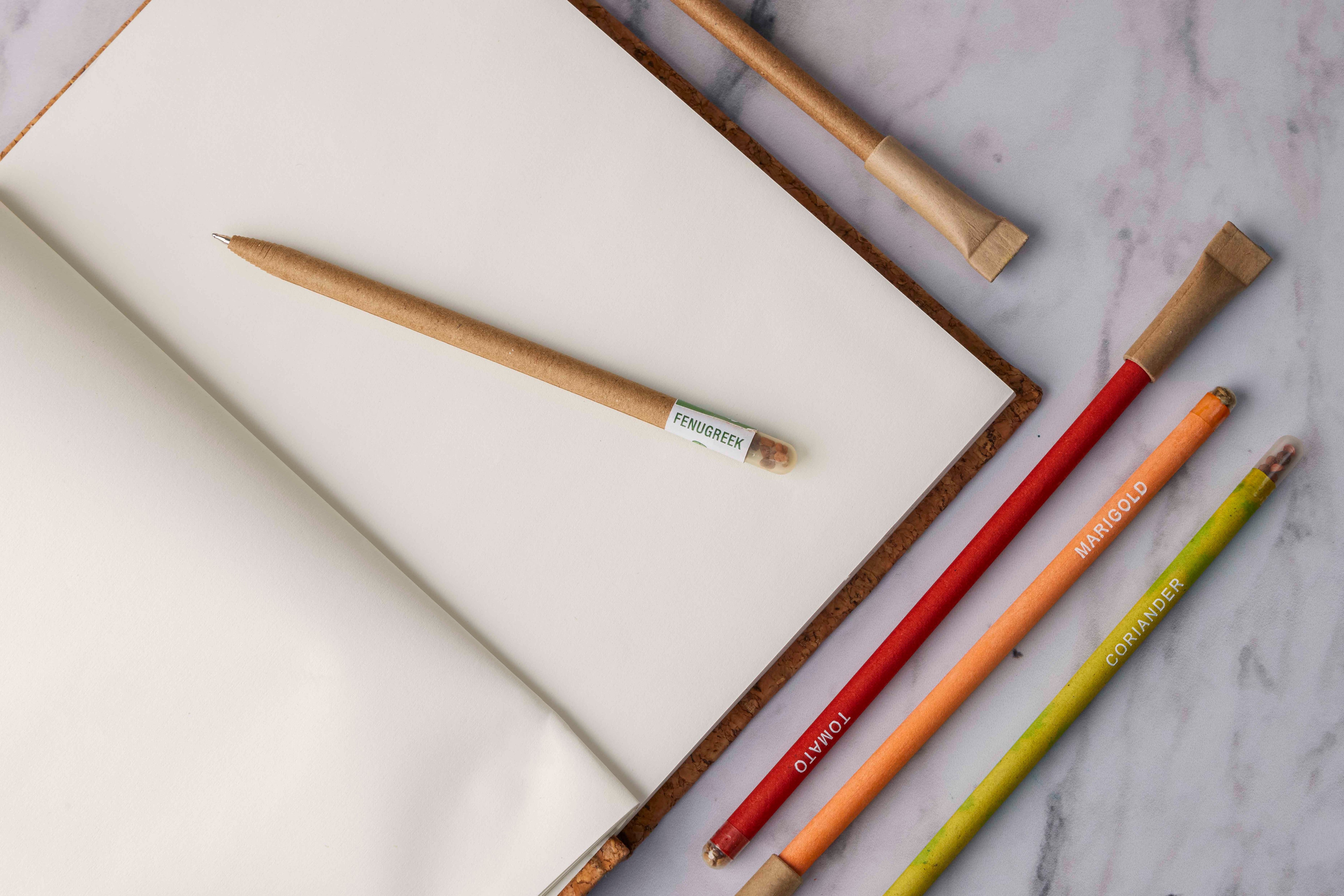 After use, dispose the pencil by sowing it in a pot. A beautiful Marigold plant will grow out if it